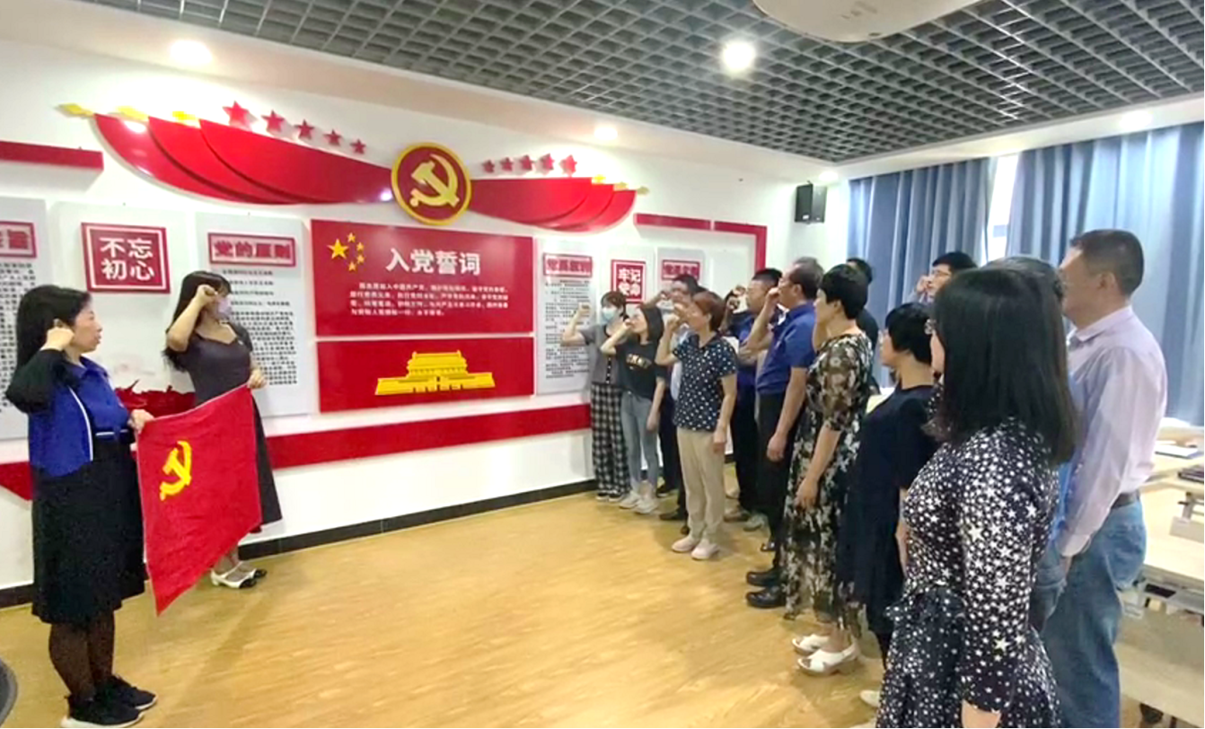 在面对党旗共同宣誓的环节中,高雪莲带领大家一起怀着对党的忠诚之心庄严宣誓:“我志愿加入中国共产党,拥护党的纲领,遵守党的章程,履行党员义务,执行党的决定,严守党的纪律,保守党的秘密,对党忠诚,积极工作,为共产主义奋斗斗争,随时准备为党和人民牺牲一切,永不叛党”。庄严的宣誓,时刻警醒和激励着宣誓与会的同志们,要不断提高对党的事业的责任感和自觉性,并以实际行动来履行自己的庄严誓言,随时准备为党和人民的利益牺牲一切。