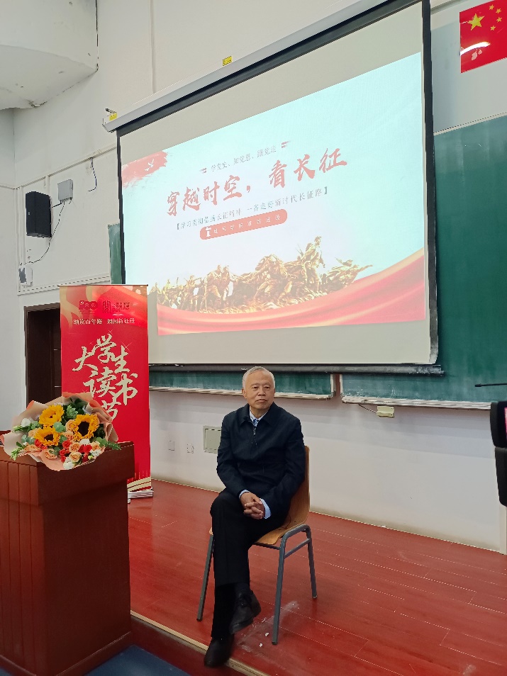 于10月19日下午,在主C204举行了“穿越时空看长征”主题讲座。讲座报告人为原中共中央党史研究室副巡视员、研究员,国务院政府特殊津贴专家王新生。书香中国·北京阅读季大学生读书节组委会王婷老师,以及学院的“双百班”同学和青马读书负责同学参加了此次讲座。讲座之前,学院党委副书记王硕对“双百班”的学期学习工作做了简要动员与部署。