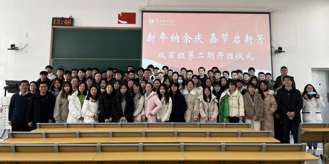 “双百班”第二期开班仪式在教一12阶梯教室举办。学院党委副书记王硕,“双百班”班主任李学宝、邓二平,副班主任谢雨柔、王欣、高煜和指导老师周璟峰,“双百班”结业成员代表和其他“双百班”成员参加了活动。