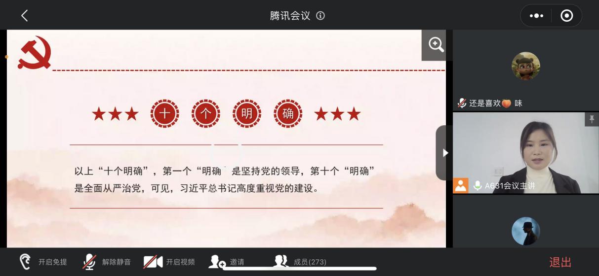 卜春梅最后表达了感谢。感谢骆小平老师体系完善、重点突出的辅导讲授,感谢会务人员线上线下相结合集中学习方式的积极探索,感谢老师们积极的学习、认真的参与。她表示,广大教师党员要以史为鉴、以史为师、以史明志,坚定践行初心使命,加强理论学习、提高政治站位,为实现第二个百年奋斗目标、实现中华民族伟大复兴的中国梦而不懈奋斗。