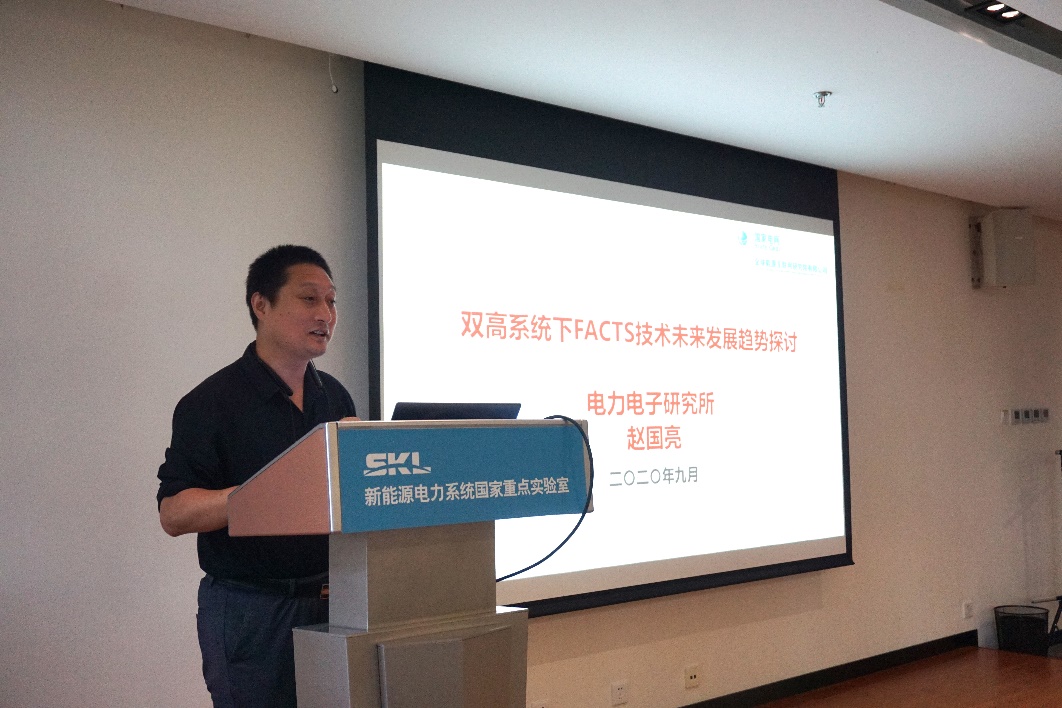 教授级高工赵国亮以“双高系统下FACTS技术未来发展趋势探讨”做了首场报告。报告的主要内容为双高电力系统目前的情况和存在的问题、解决这些问题所需要的未来技术要求和发展重点——柔性变电站、柔性低频交流输电等技术。他指明,双高电力系统趋势不可避免,因此对于FACTS设备的电网适应性是近期研究的重点。报告结束之后现场师生进行提问,与此同时线上听取报告会的同学亦向赵教授提出了自己的问题。虽然不能来到现场,但是阻挡不了一颗求知的心。