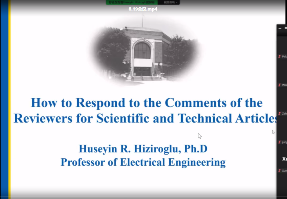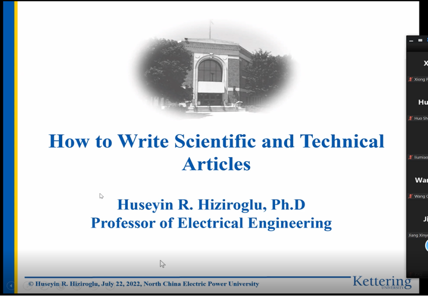 邀请了IEEE Transactions on Dielectrics and Electrical Insulation主编、美国Kettering大学Huseyin R. Hiziroglu教授做成果提炼、论文写作的系列专题讲座。讲座由学院电磁与超导电工研究所卞星明教授主持,电院双百班学员及电磁所、高压所博士生、硕士生近200人聆听了两次线上报告。