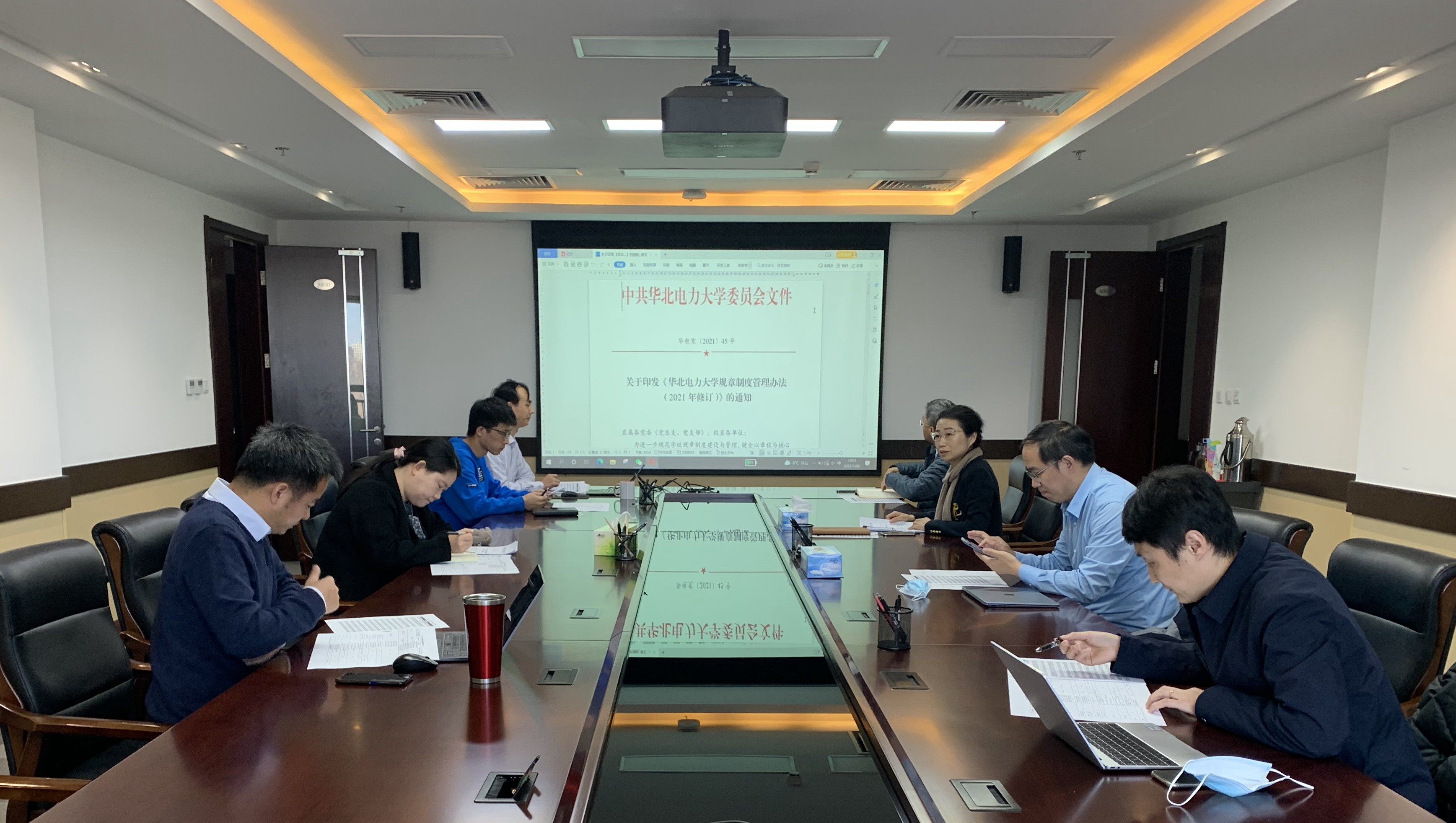 规章制度管理办法(2021年修订)》,重点学习了规章制度建设的遵循原则、基本要求、主要程序、注意事项等文件内容,并对学院27项主要规章制度情况做了简要介绍。