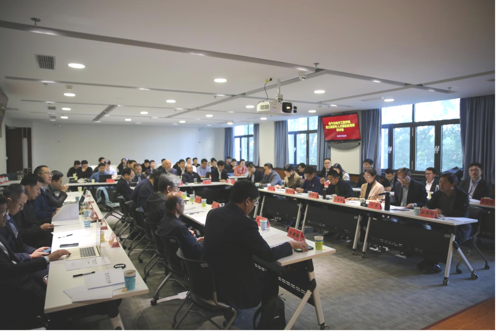 大学党委常委、副校长毕天姝教授,天津理工大学杨庆新教授、河海大学鞠平教授、西安交通大学李盛涛教授、北京理工大学陶然教授、浙江大学盛况教授、重庆大学谢开贵教授、清华大学吴文传教授、东南大学花为教授、中国科学院电工研究所邵涛研究员、北京邮电大学彭木根教授、海军工程大学肖飞教授、北京交通大学李虹教授以及校内学科责任教授等17位专家出席会议,学院党政班子成员、参与青年人才遴选的15位学院教师以及近三年入职的全体新讲师博士后参加会议。