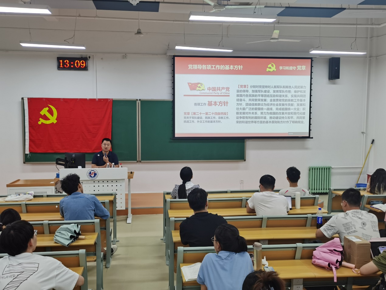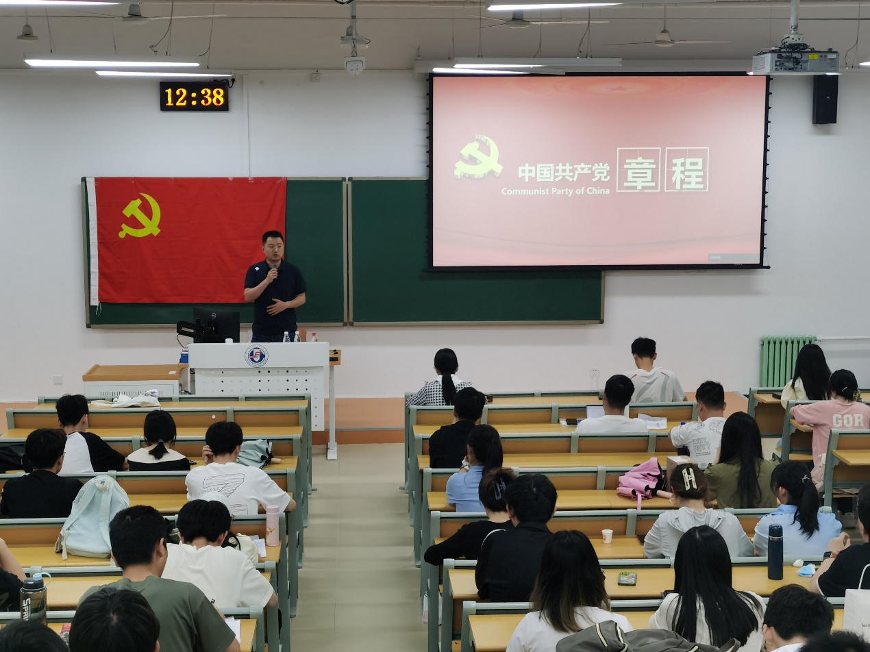 第57期入党积极分子培训班第三次党课在主B101举行。学院党委副书记王栋梁为全体学员系统详细的解读了《中国共产党章程》。