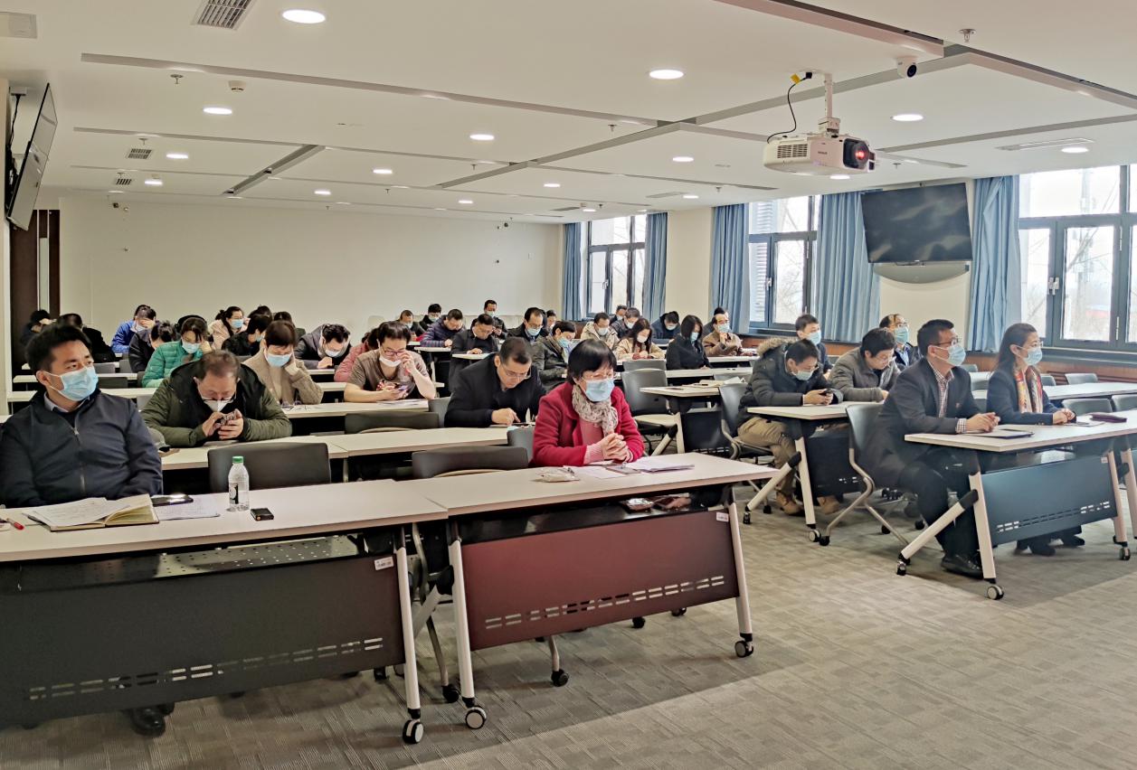 宫凯对2020年度处级领导班子及干部述职评议考核工作,开展了测评要点讲解,并现场组织发放测评密码。全体教职工本着客观、公正的态度,对学院领导班子及干部进行网络测评打分。
