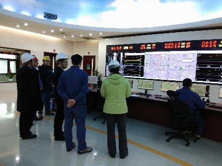 北京太阳宫燃气热电有限公司总经理侯小龙、副总经理任功德、总经理助理喜静波以及发电部、设备部共6位领导专家对华北电力大学电气学院的来访表示了热烈的欢迎。候小龙总经理亲自迎接并结合微缩模型详细介绍了京阳热电公司厂区构成、区位优势与环保等级,重点阐述了公司780MW燃气-蒸汽联合循环发电机组的原理和特点。发电部部长徐海鑫引导电气学院一行5人参观考察了热电站集控室、燃气加压站、燃气轮机、余热锅炉、汽轮机、发电机等。