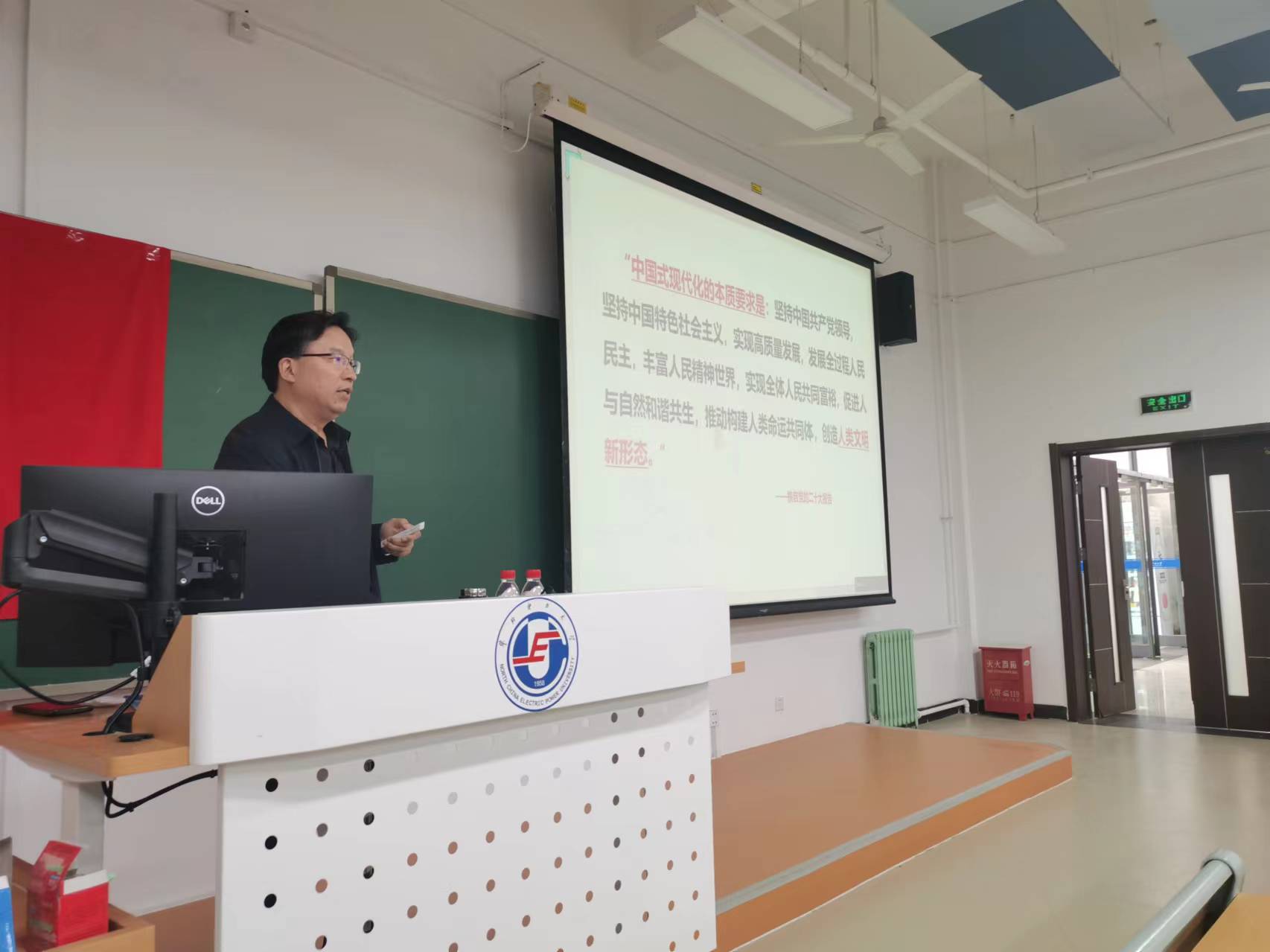 孙平老师围绕中国式现代化发展进程中有关概念、理论以及大学生的使命与责任等方面教导学生要注重个人文化知识以及党性修养的学习和培养,多读书,读好书,善于思考,勤于写作,不断提升知识水平和综合素养,打开更广阔的文化视野,从而在未来的创新发展中汲取灵感和智慧,为我们国家的高质量发展贡献自己的力量和才华,努力成为具有远见和创新力的社会主义建设者和接班人。