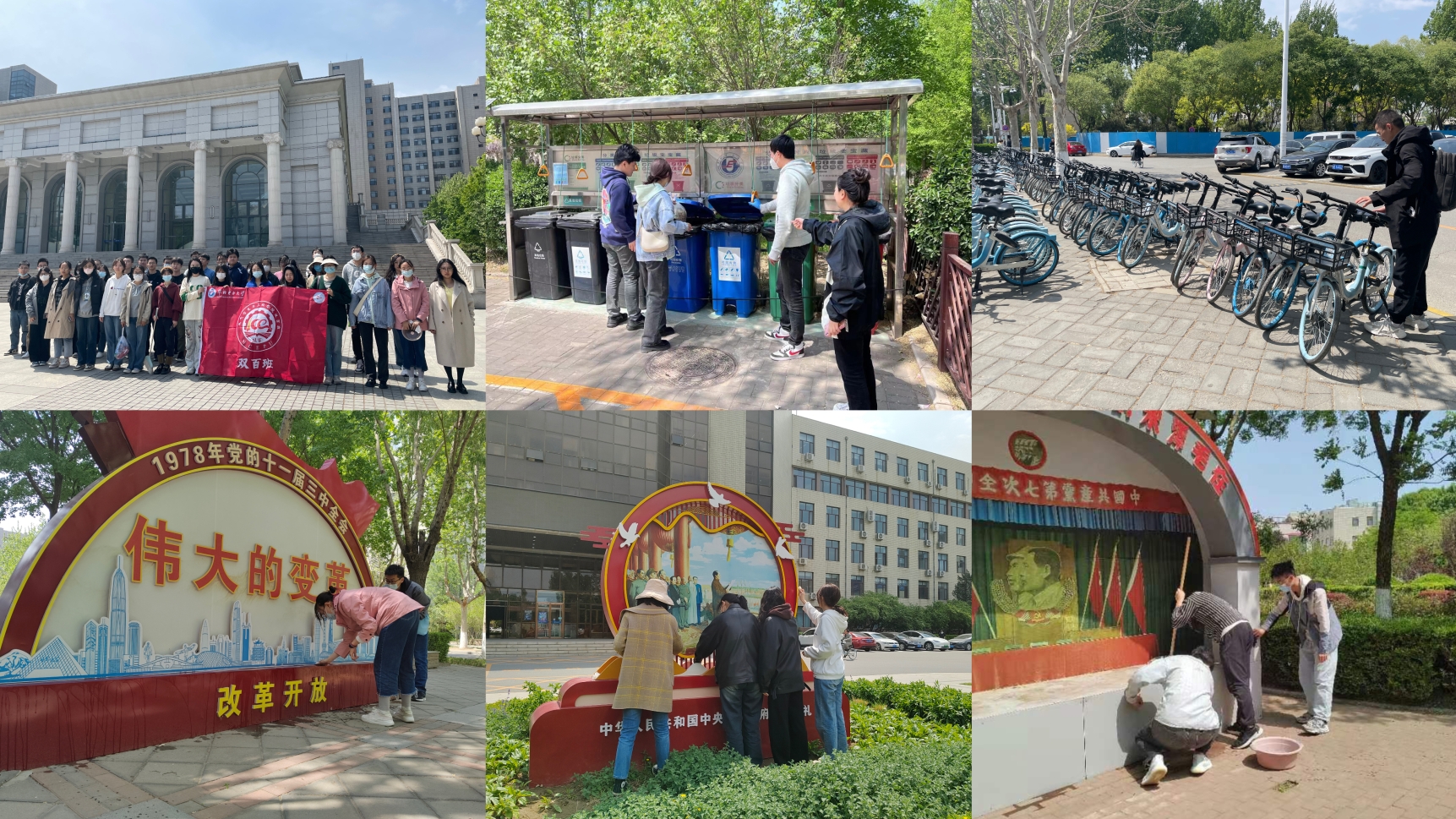 为进一步发挥双百班引领辐射带动100%电院学子的作用,增强青年学子参与劳动的获得感、幸福感,让劳模精神入脑入心,4月26日,双百班党支部开展了美化校园的劳动志愿活动,50余名电院学子参与了此次活动,擦亮校园微景观、摆齐自行车、值守垃圾桶,校园内到处都有他们青春、勤劳的身影,双手劳作,汗水浇灌,劳动在校园内开出了最美丽的花朵。