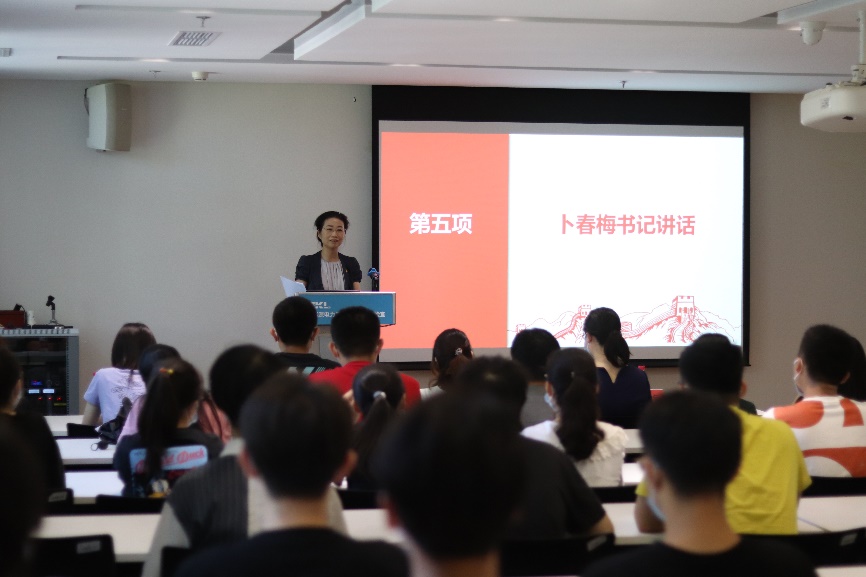 卜春梅高度肯定本次活动,并希望以本次出征仪式为起点,在做好组织筹备的同时,传承并丰富实践内涵。2021年是中国共产党百年华诞,站在“两个一百年”奋斗目标的历史交汇点上,电院学子要深刻领会社会实践的重要意义,通过实践肩负起时代交予的使命,传承和弘扬中国共产党的精神谱系。卜春梅向全体师生介绍了学院“双带双百双行动”育人项目开展情况,并结合自身工作感悟,深情寄语广大同学们:合理选题,聚焦时代热点;科学规划,把握时代节拍;朋辈协作,彰显青年担当;脚踏实地,做精做细做实,打造出高水平、高层次、高质量的实践成果,向建党100周年献礼。