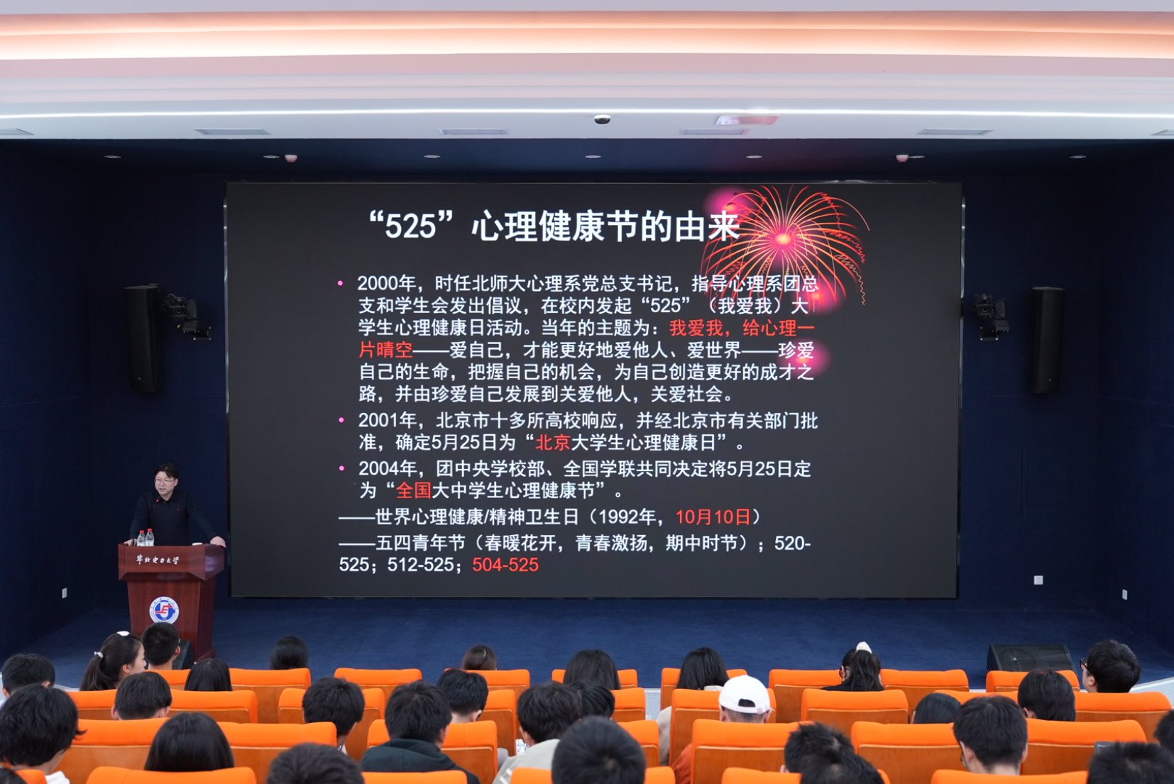 知心工作室邀请北京师范大学心理学部教授、博士生导师伍新春,在教一14阶梯教室举办了“爱我,爱你,爱世界”心理专题讲座,院内外共计120余名同学积极参加此次活动。