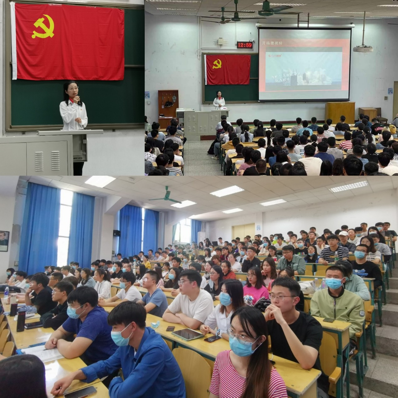 5月10日中午,电气与电子工程学院党委书记卜春梅以“从党章看中国共产党的初心与使命——如何做一名合格共产党员”为题,回首党章的形成与发展历程,结合十九大新党章的重要意义,联系学院党史学习教育及大学生党员培训发展工作实际,带领298名入党积极分子学习感悟中国共产党人的初心与使命,以实际行动争取早日成为一名共产党员。
