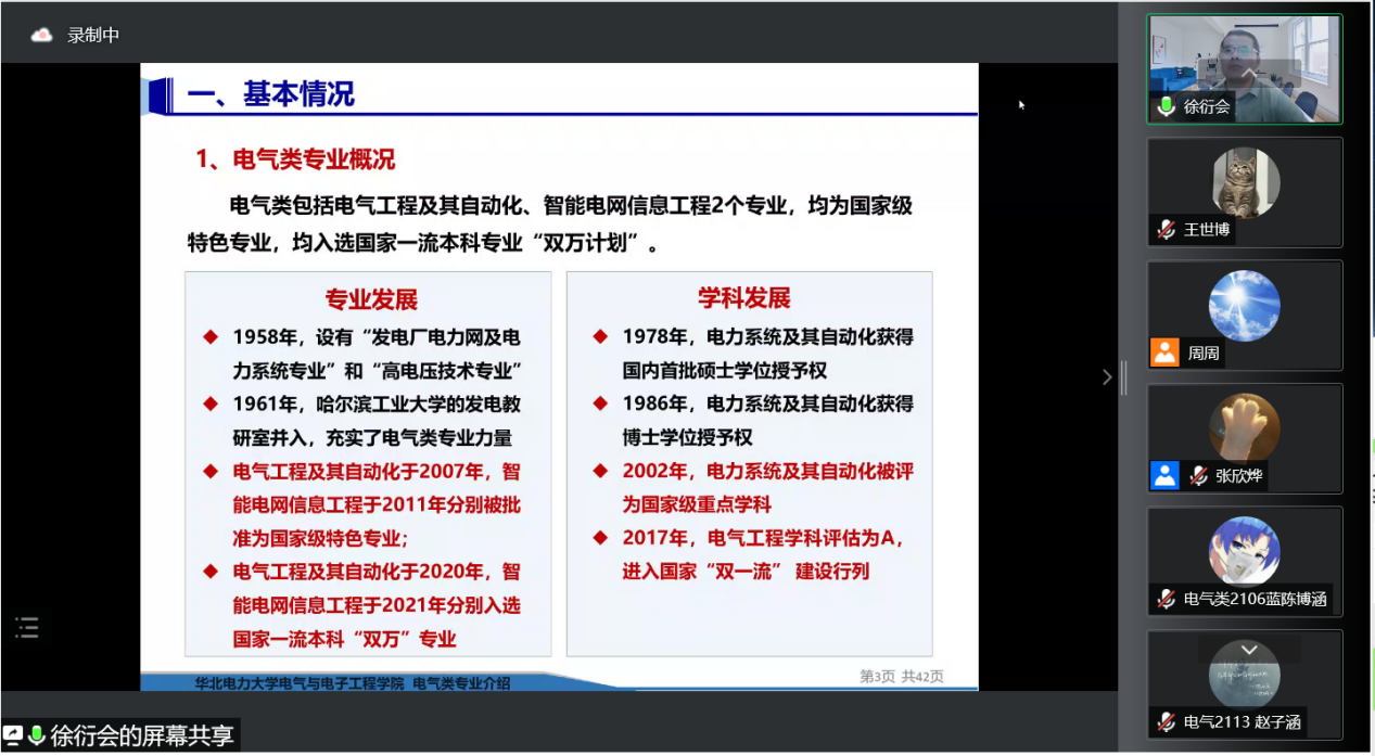 于7月14日14:00和19:00以线上形式召开电气类、电子信息类专业分流宣讲会。此次系列宣讲会议邀请了学院副院长徐衍会,学院党委副书记王硕,电信类专业优秀教师范杰清、廖斌、李彬,教学秘书王玲玲,辅导员张欣烨、周璟峰以及全体本科2021级电气类、电信类学生与部分家长参加。宣讲会由辅导员张欣烨主持。
