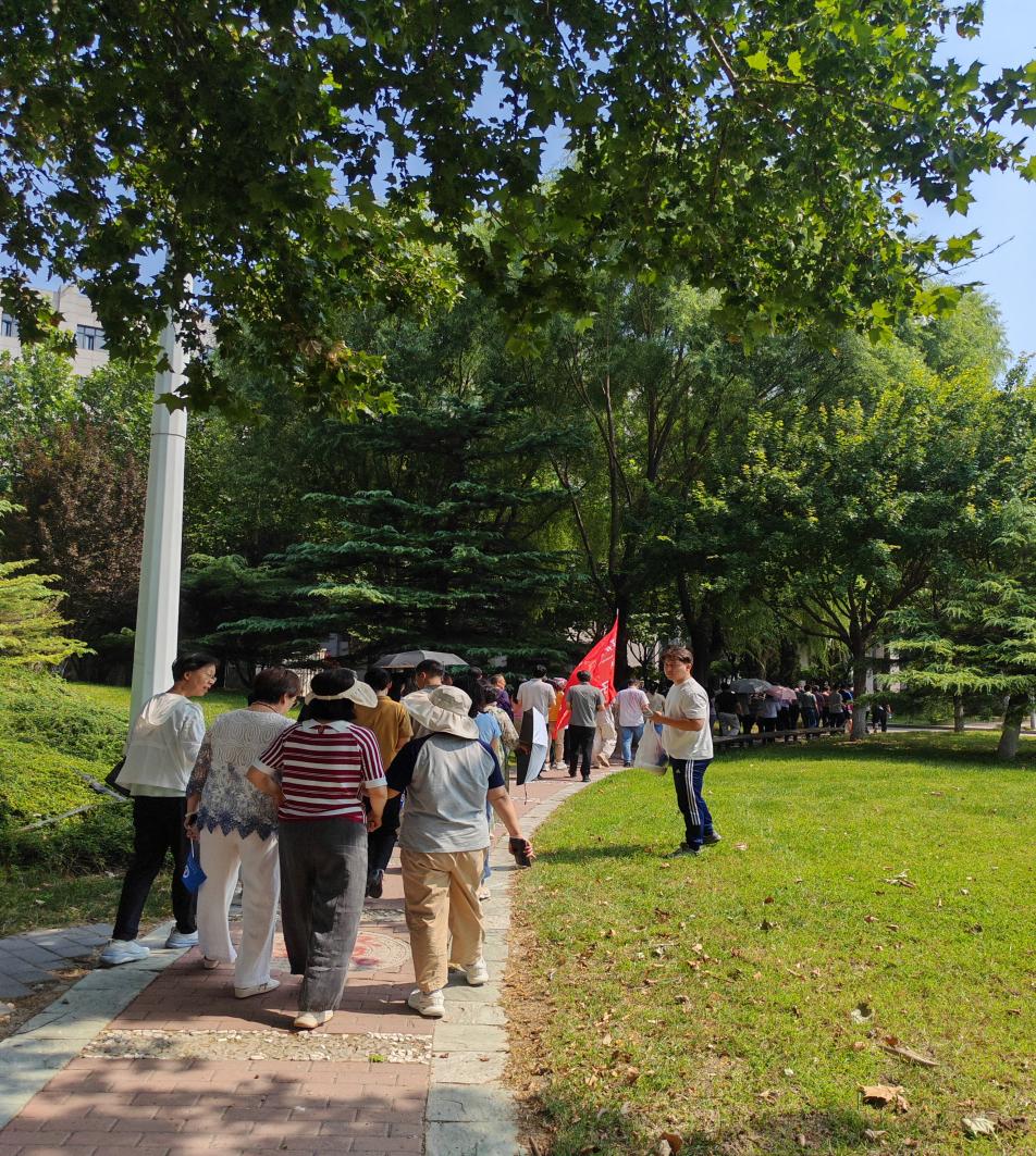 活动伊始,老师们齐聚于主楼西广场。在简短的开场后,一张满载着幸福笑容的集体合影,将此刻的美好定格为永恒。伴随着出发的号令,队伍沿着绿荫夹道的校园小路前行,老师们或并肩漫步,或三两成群,平日里严谨的学者此刻化身为轻快的行者,爽朗的笑语与亲切的交谈在静谧的校园中交织成最动听的旋律。