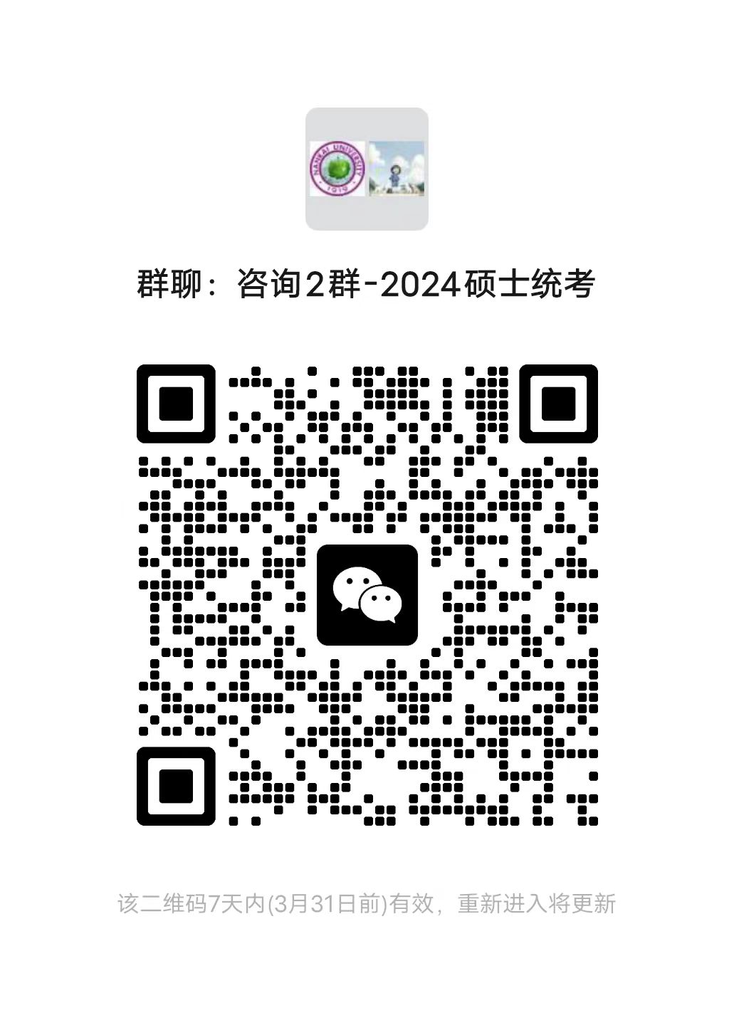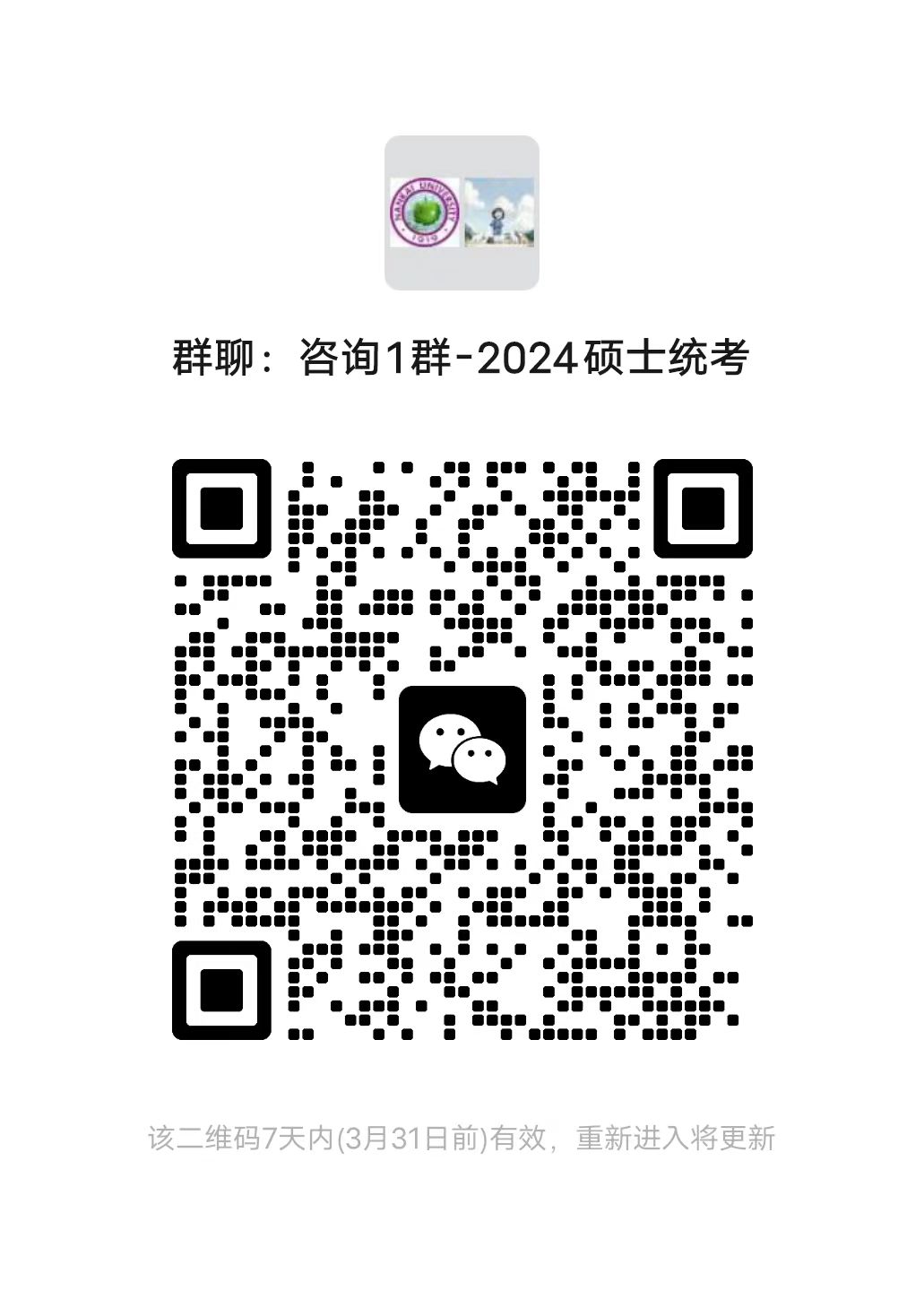 3.请所有考生务必扫描附件二维码加入电气学院2024年统考复试咨询群,密切关注群通知。每位考生只加入其中一个群即可。
