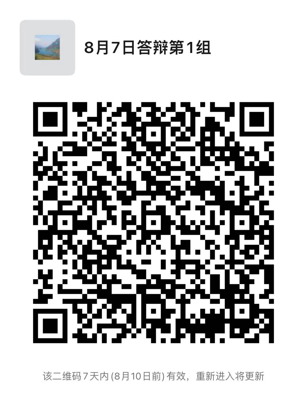 答辩时间:8月7日(周日)全天