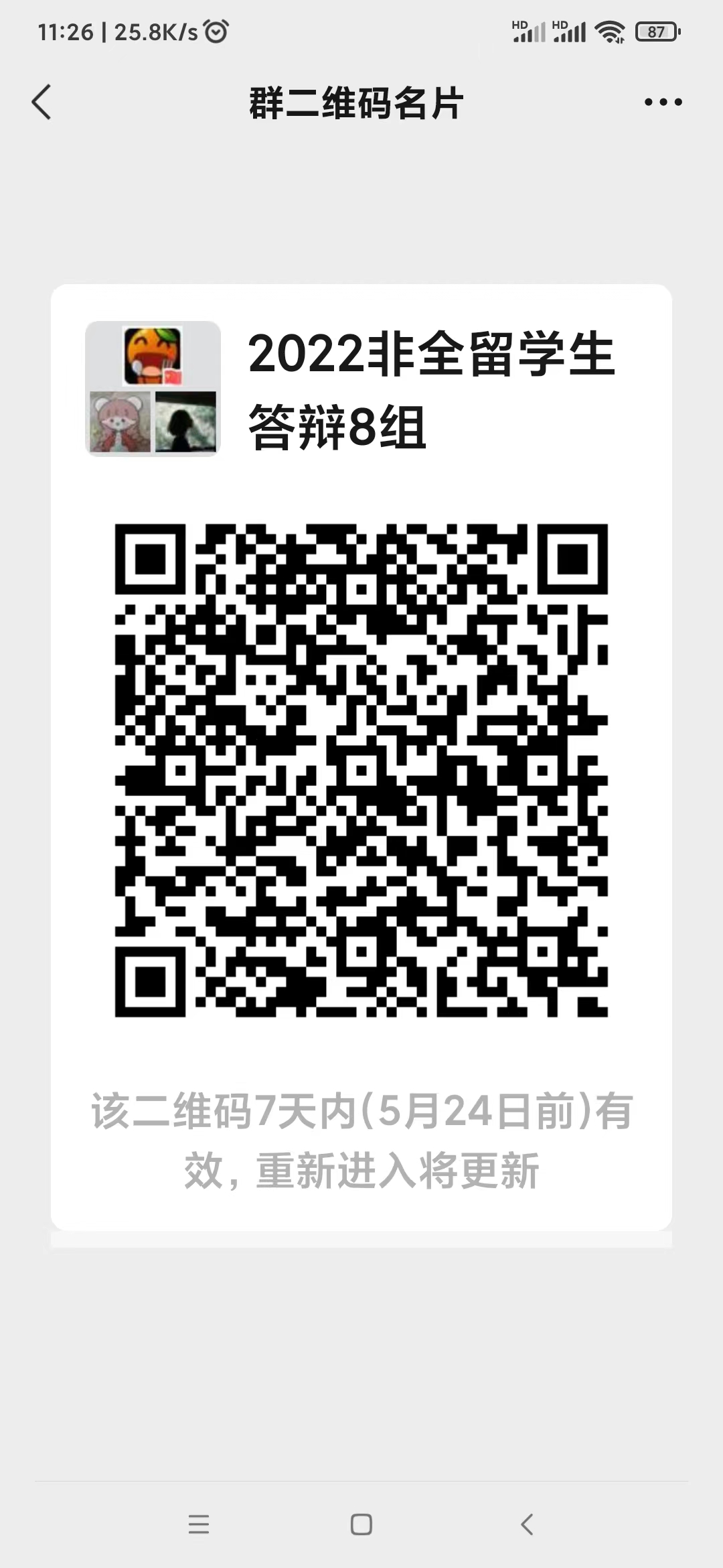 请所有参加答辩的在职/非全/留学生,均指定1位校内的同学协助提交相关材料,可按照各组答辩秘书的要求加入答辩群。