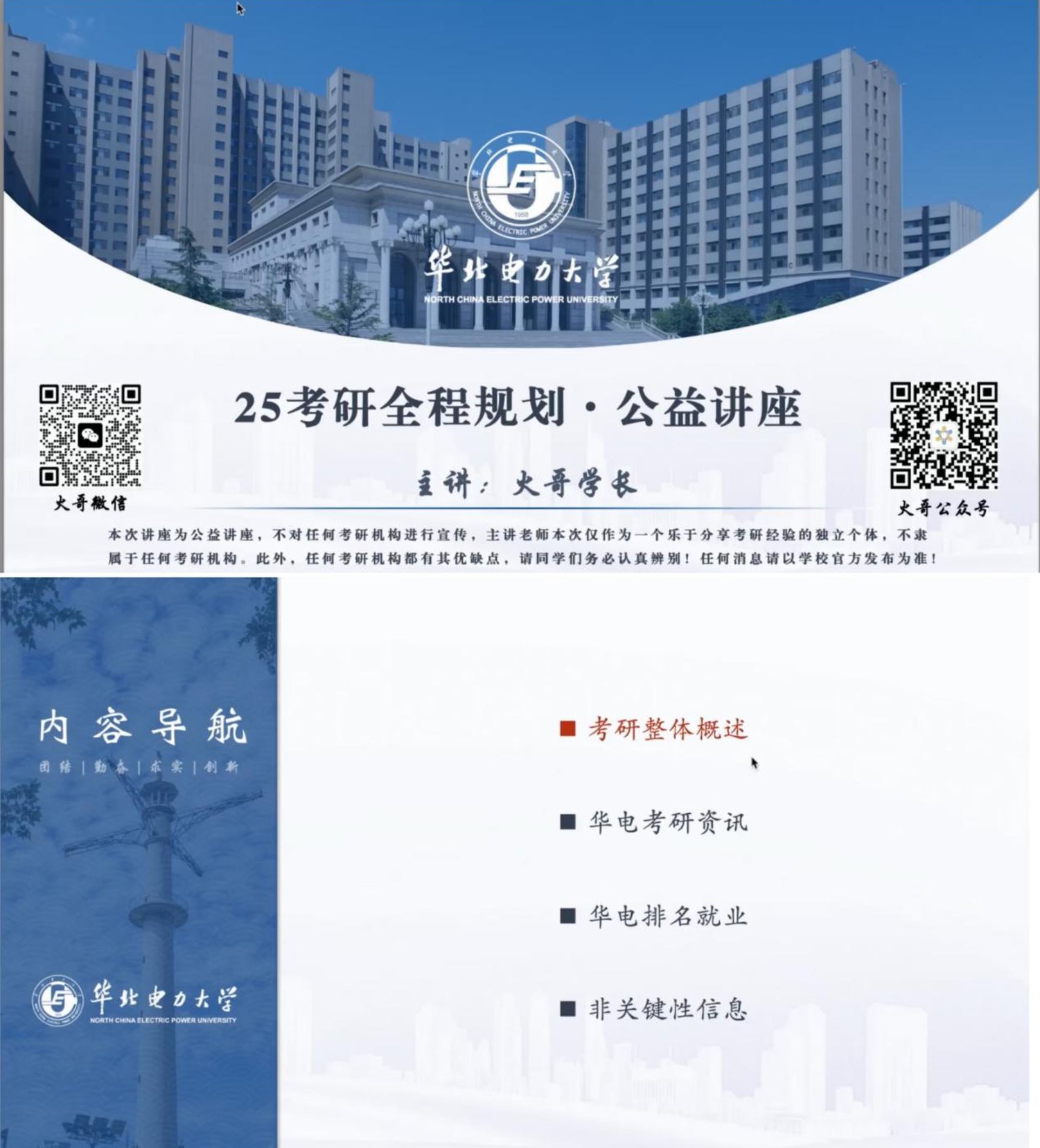 讲座从考研整体概述、华电考研咨询、华电排名就业等方面进行了详细阐述。首先从考研本身出发,介绍考研的整体流程、各专业考试科目以及往年的录取情况。接着火哥向大家介绍了电气专业初复试考试科目及内容,随后对往届考研上岸学生整体情况进行了分析,希望同学们能够按照自己的规划和实际情况合理选择学校专业,同时他建议同学们提前做好考研整体规划,并推荐了专业课复习相关参考书目。