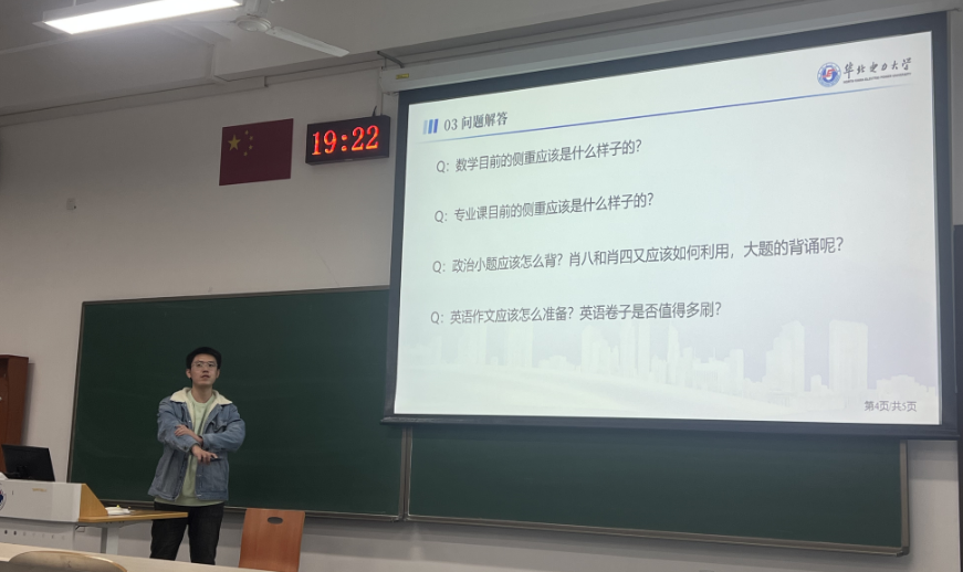 举办了考研专题讲座,由2019级徐成明同学主讲。徐成明同学是电气工程专业硕士,考研初试成绩401分,他深入浅出地分享了自己的考研经验供同学们参考。