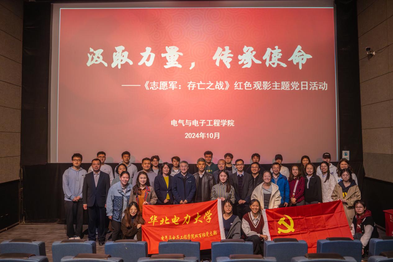 10月29日,电气与电子工程学院开展了“汲取力量 传承使命”红色观影主题党日活动,正处级组织员张宝良、全体教师党支部书记以及双百班党支部成员共同观看了电影《志愿军:存亡之战》。