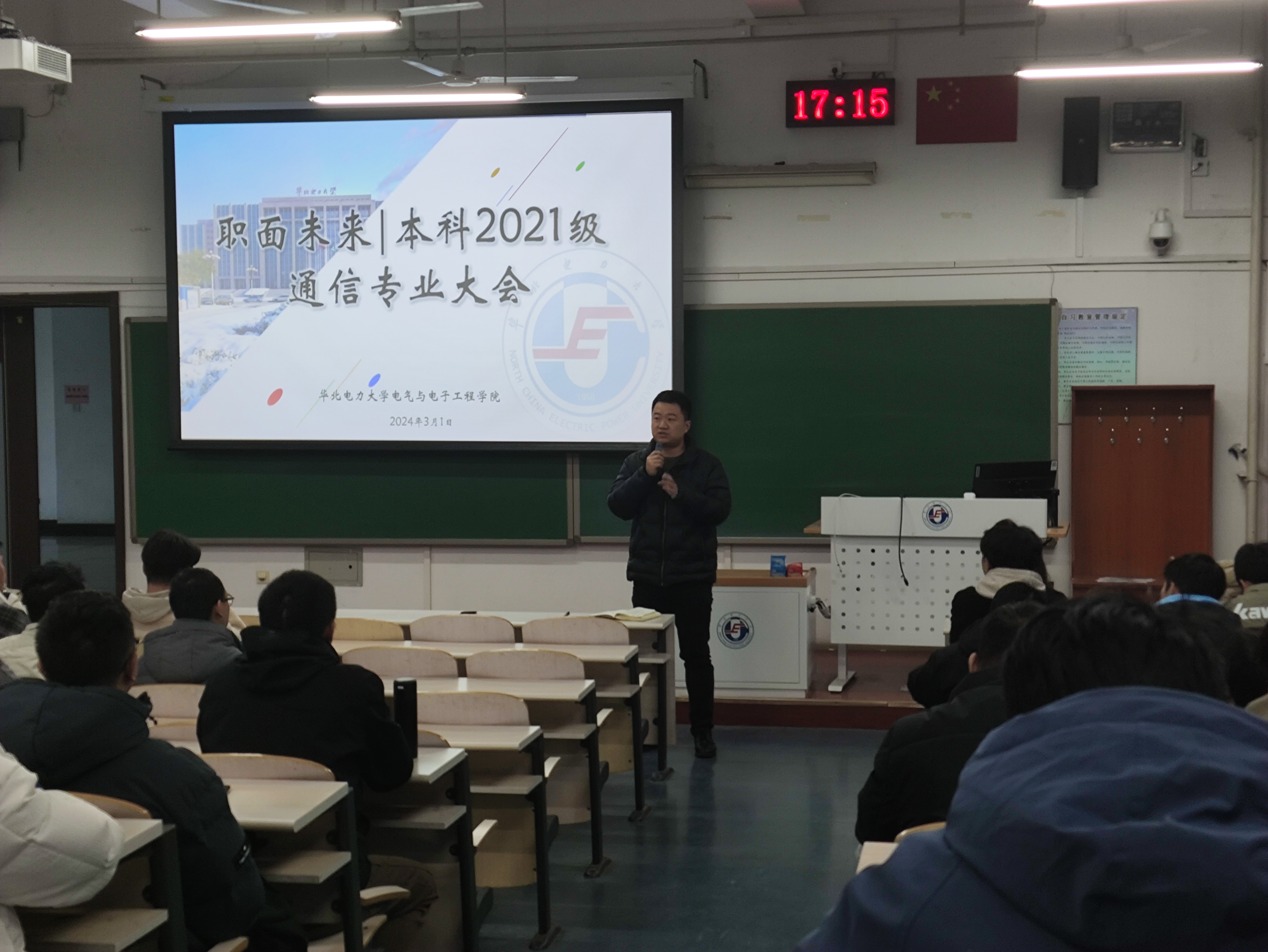 本科2021级召开“职面未来”之通信工程专业大会。学院党委副书记王栋梁,本科2021级辅导员张欣烨、孙伟,班主任姚夏元、杨春萍以及本科2021级通信专业全体学生参与会议。