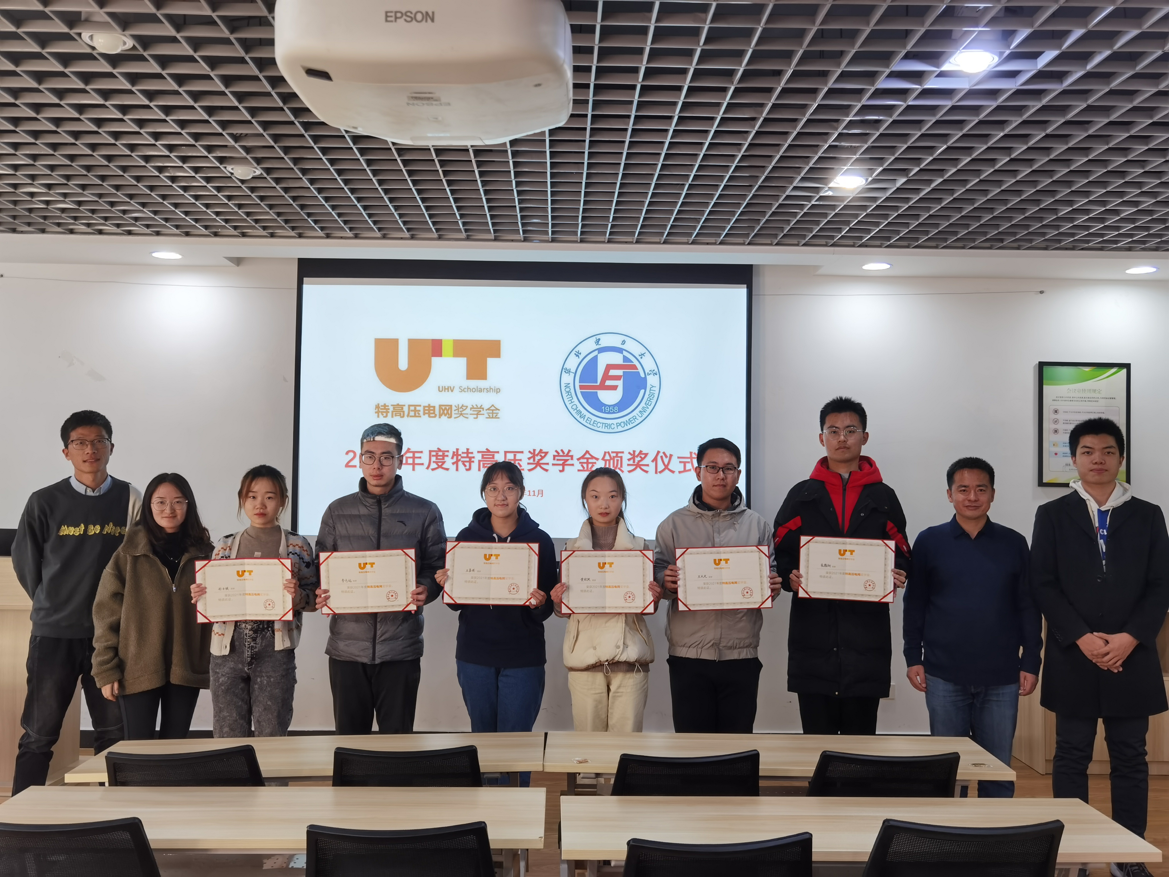 11月25日下午1点半,2021年度特高压奖学金颁奖仪式在主A631举行。学院党委副书记王硕,学院团委书记、本科18级辅导员马腾、本科19级辅导员赵赫奕,本科20级辅导员余培出席本次仪式。王硕书记为获奖同学(电气1901 孙士棋 电气1810 李志远 电气1907 朱灏翔 贯通1901王天龙 贯通1901黄欣然 电气2012 王嘉琪)颁发了奖状和奖章,以示鼓励。颁奖仪式后,王硕书记对于同学们的努力和付出表示肯定,并希望同学们继续加油,不断超越自己。此外,他还鼓励同学们可以主动分享自己的学习经验,帮助年级的其他同学们共同进步。至此,2021年度特高压奖学金颁奖仪式圆满结束。
