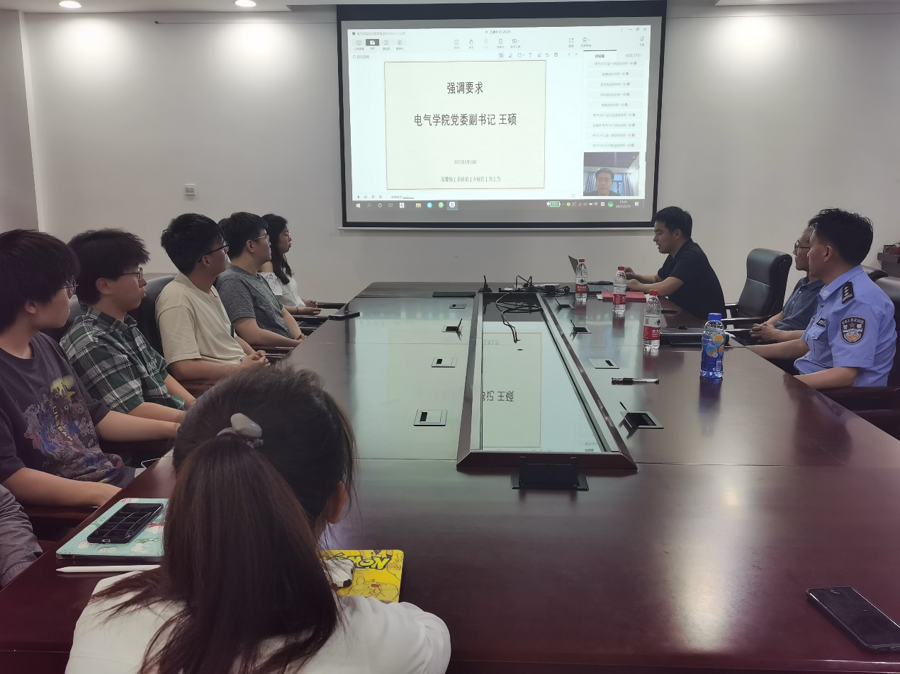 于5月19日晚召开反诈宣传防范工作推进会。本次会议采用“线上+线下”方式进行,史各庄派出所警官程应学、学院党委副书记王硕、保卫处老师康全起、本科2017级辅导员赵兴以及学生党支部书记、班长、团支书、宿舍长共计450余人参加会议。会议由学院团委书记马腾主持。