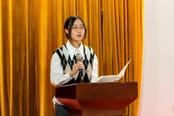 学院双百班孙逸萌同学代表学院在校生发言。她坦言大学生活充满着无限可能,鼓励大家勇于尝试。她说,作为新时代青年,电院学子更应立大志、明大德、成大才、担大任,为国家的能源电力事业贡献华电力量。