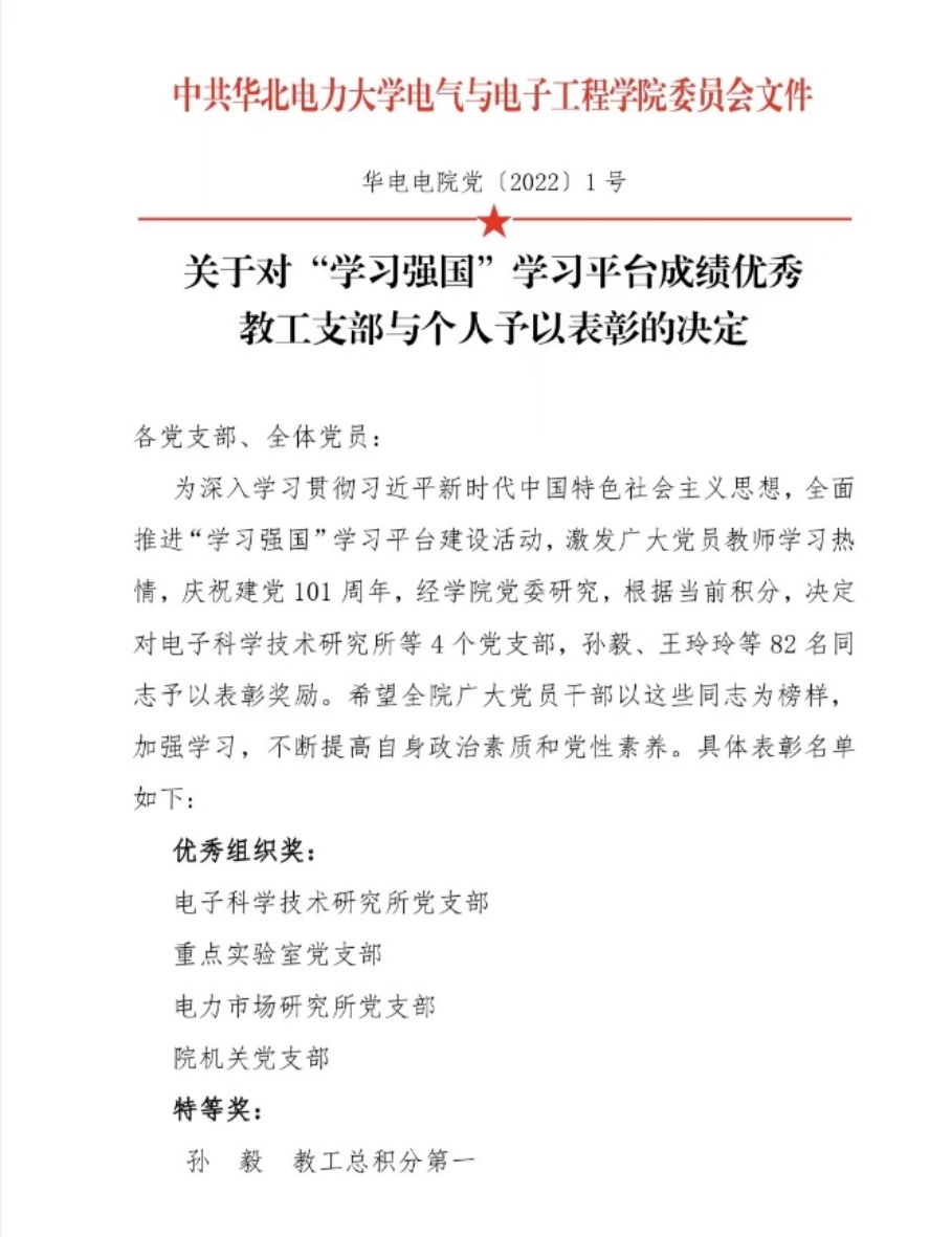 为庆祝“七一”建党节,学院各党支部积极开展特色活动。输配电系统研究所纵向党支部于6月28日召开了以支部成立一周年工作总结暨迎“七一”活动为主题的支部党员大会,回顾该支部的历史沿革,展现建设成效并对支部提出未来期许。重点实验室党支部通过观看百年风华、中共一大,中国共产党成立的历史过程等系列影片和讲座,回顾中国共产党成立之初的历史及建党以来取得的巨大成就,鼓舞师生不忘初心、奋发进取。留校学生党员积极承担毕业生档案整理工作,以无私忘我的精神奋斗于毕业离校保障服务工作的第一线,充分确保各项工作的有序开展。各学生党支部积极开展理论学习与实践活动,组织观看学习庆祝香港回归祖国25周年大会暨香港特别行政区第六届政府就职典礼,深刻领悟中国共产党一百多年来开辟的伟大道路、创造的伟大事业、取得的伟大成就。电院学子纷纷表示必将不负韶华、不负时代、不负人民,为维护祖国统一,实现中华民族的伟大复兴付出自己的一份力量。