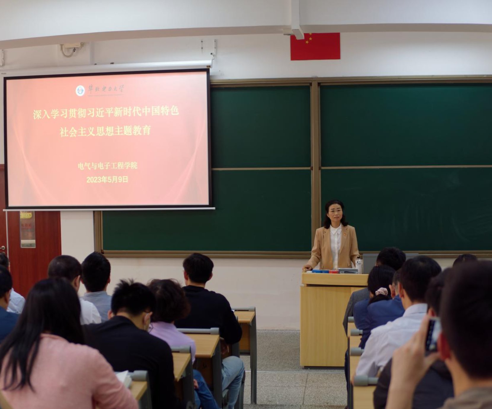 在教一06阶梯教室召开学习贯彻习近平新时代中国特色社会主义思想主题教育部署推进会暨专题讲座,深入学习领会习近平总书记在主题教育工作会议上的重要讲话精神,贯彻落实学校主题教育动员会决策部署,对学院扎实开展主题教育进行全面动员。学院领导班子全体成员、各党支部书记、师生代表参加会议。