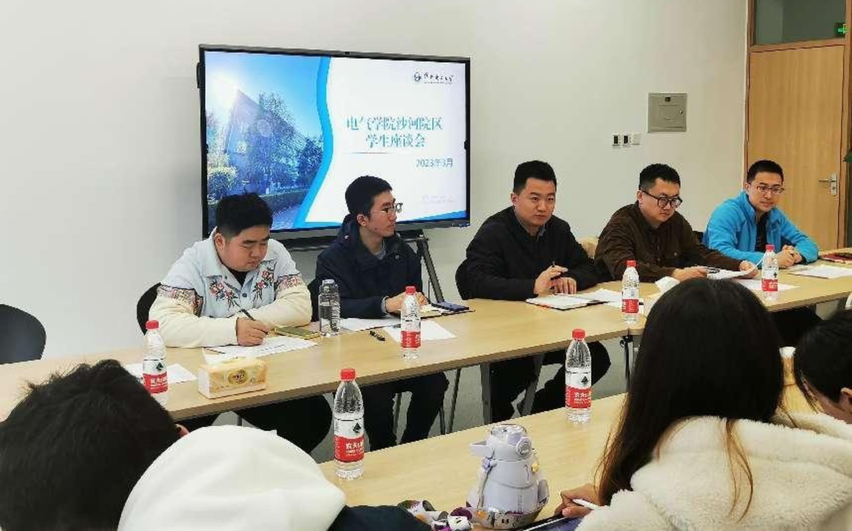 于沙河院区习成大厦一楼会议厅召开学生骨干座谈会。学院党委副书记王栋梁、沙河院区团委书记李伯远、辅导员孙学霏、学院研一辅导员孙智、黄鸿毅,和各班学生骨干参加座谈。