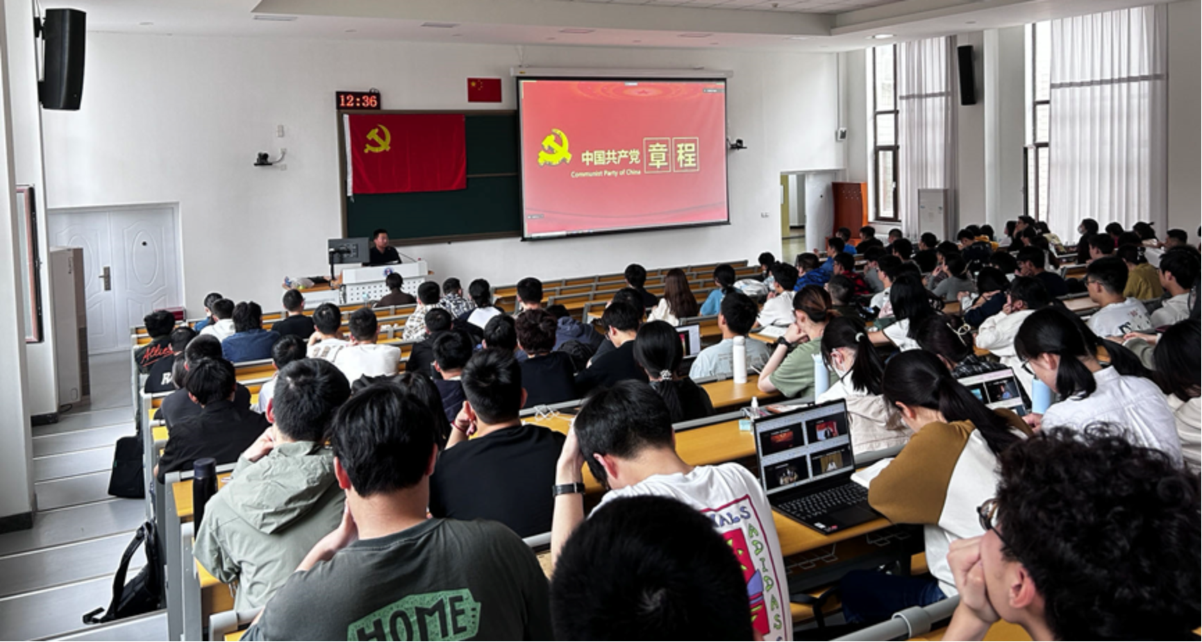 第55期入党积极分子培训班第二次党课在教一12阶举行。学院党委副书记王栋梁为全体学员系统详细地解读了《中国共产党章程》,辅导员王倩参加了本次党课培训。
