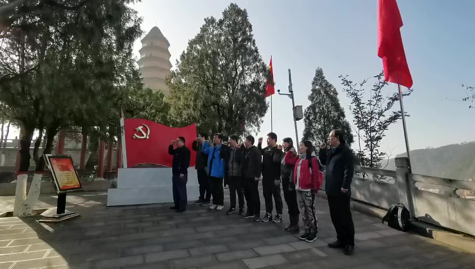 在延河岸边宝塔山下,党员们重温了入党誓词,志愿为共产主义奋斗终身,随时为党和人民奉献一切。