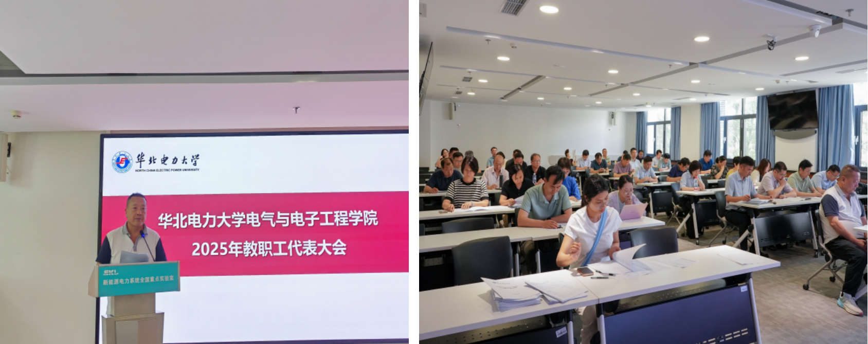 召开2025年教职工代表大会,学院教师代表齐聚一堂,共商学院发展大计,会议由学院教代会执委会主任艾欣主持。