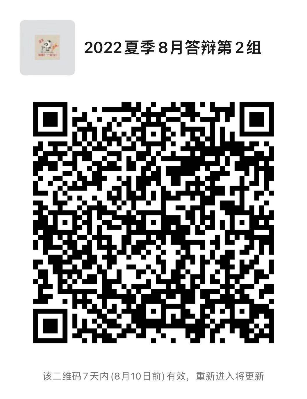 答辩时间:8月7日(周日)全天